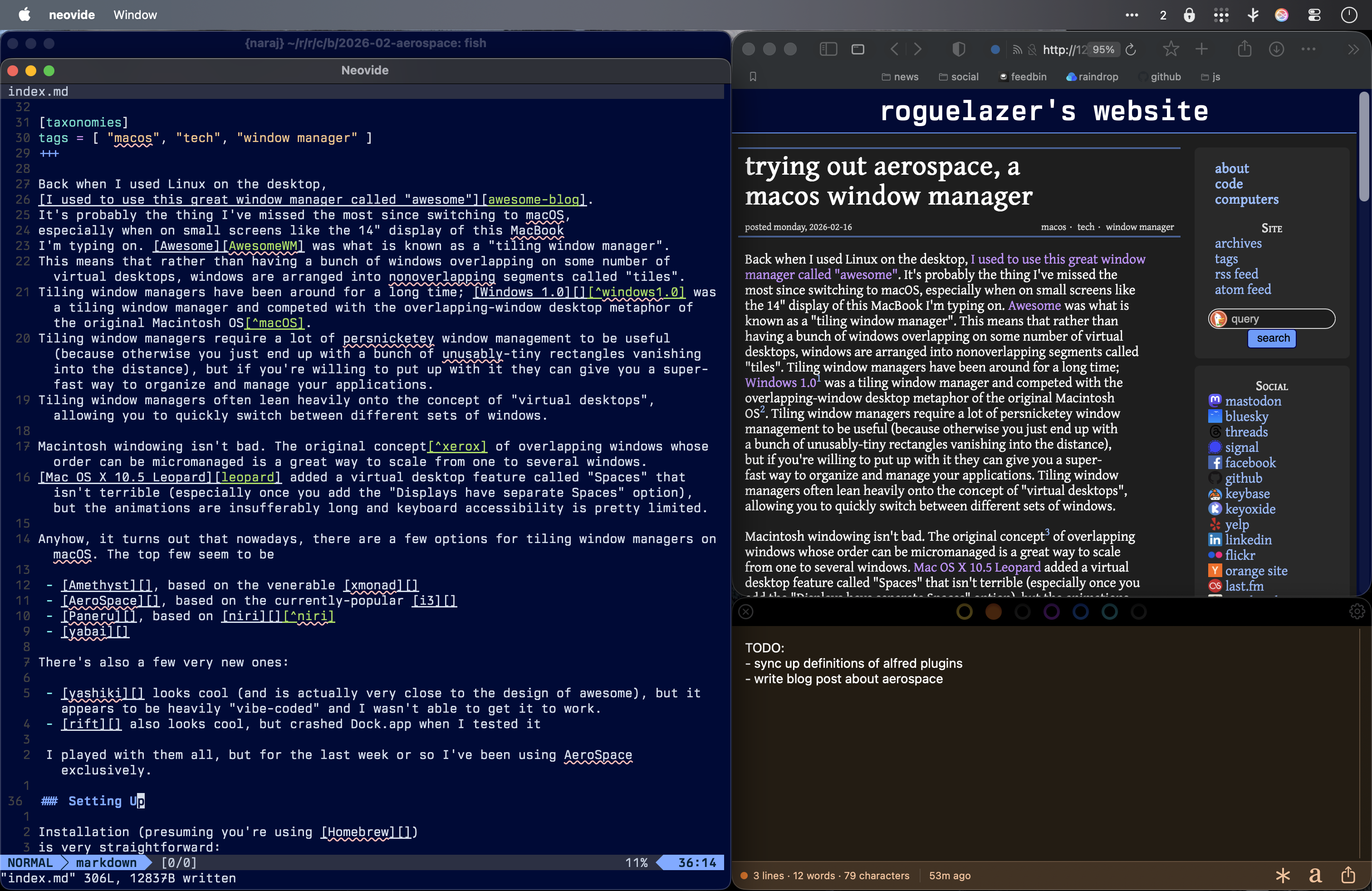 trying out aerospace, a macos window manager